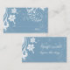 O texto sobre estes elegantes cartões azuis-claros ou azuis-claros e brancos, casamentos florais ou locais de eventos especiais ou cartões de escolta é perfeitamente personalizável, ou deixa-o como está. O tamanho da placa é de 3,5 pol x 2 pol e tudo o que é necessário são alguns suportes de cartão de lugar ou apenas uma mesa para exibi-los. Este sofisticado cartão floral funcionará bem em diversas ocasiões especiais, incluindo casamentos, festas de aniversário, festas de aniversário, etc. Azul e branco elegantes funcionam bem para um casamento na primavera, verão ou inverno. O floral tem um sentimento de safra.