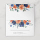 Cartões de lugar para casamentos outono elegantes, com flores pintadas à mão, pintadas à base de água, e verde em cor de laranja e marinho queimados/ferrugem. Escreva os nomes dos seus convidados e os números das tabelas. Esta é uma versão de tenda de cartão de lugar dobrável.