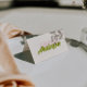 Cartão de lugar de casamento minimalista moderno projetado para uma mesa de recepção limpa e elegante. Este cartão de acompanhamento dobrado apresenta um nome de casamento em letra cursiva retrô divertida combinado com tipografia contemporânea. A decoração de casamento em verde e rosa adiciona um toque fresco e elegante ao seu casamento. Perfeito como um cartão de nome de convidado personalizado para uma celebração de casamento chic e simples. Use este cartão de lugar dobrado elegante para elevar a decoração da mesa de recepção moderna. Um cartão de mesa de casamento contemporâneo sofisticado que complementa qualquer tema de casamento minimalista.