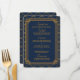 Estes cartões de menu apresentam uma paleta de cor azul e dourada, um quadro geométrico, padrões geométricos e outros detalhes estilísticos inspirados no Art Deco e nos vinte e poucos anos ruidosos. Você pode personalizar os campos de texto de exemplo de acordo com o seu gosto.