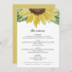 Este cartão de menu apresenta um girassol rústico em aquarela. Edite facilmente todas as palavras para qualquer evento (chuva de bebê, chá de noiva, casamento, jantar de ensaio, etc).