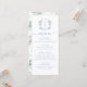 Melhore sua capa de casamento com esses elegantes cartões de cardápio clássicos vitorianos franceses estilhaçados, lindamente enfeitados com delicadas flores azuis claras e brancas de peônia em crista de safra. Apresentando texto azul minimalista e sofisticado, esses menus acrescentam um toque botânico refinado ao seu casamento de primavera ou verão. Perfeito para o jardim ou comemorações de temas florais!
