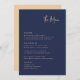 Este menu de casamento tem uma fonte moderna escrita à mão e uma design minimalista limpa. Os cartões de menu apresentam um estilo de script e um layout que é fácil de personalizar.