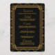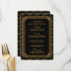 Estes cartões de menu apresentam uma paleta a cores preta e dourada, um quadro geométrico e padrões geométricos, outros detalhes estilísticos inspirados na Arte Deco e nos vinte e poucos anos ruidosos. Você pode personalizar os campos de texto de exemplo de acordo com o seu gosto.