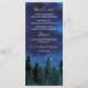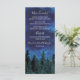 Cartões de Menu de Casamento Russo de Pinheiros com Aquarelas - apresentam um céu noturno estrelado com cor d'água com pinheiros eververdes em vários tons de verde com um layout de texto elegante. Consulte produtos correspondentes na coleção encontrada nesta página.