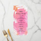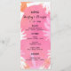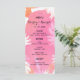 Amor de verão? O design moderno e fresco tem coqueiros sobre uma coloração d'água rosa e um fundo laranja que lembra aqueles céus quentes do verão enquanto o sol se põe. Os cartões de cardápio de matas tropicais são totalmente abertos para casamentos de verão, viagem, ao ar livre ou de destino.