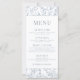 O elegante francês moderno inspirava cartões de cardápio florais azuis empoeirados.