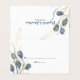 Simples e elegante, estas cartas de mesa de casamento são a forma perfeita de sentar todos os seus amigos e família no seu grande primavera ou grande dia de verão. Apresenta ramos de eucalipto de cor azul pintados manualmente e folhas florais de ouro em fundo branco e tipografia azul que podem ser personalizadas. O interior está coberto com a folhagem dourada num chão negro azul.