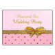 "Reservado para" cartões cor-de-rosa e de mesa dourada. Texto diz, "reservado para a festa de casamento" mas pode ser editado para dizer o que você quiser na área personalizada.