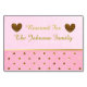 Cartões cor-de-rosa e mesas dourados "Reservados para"/