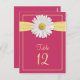 Cartão de número da mesa de margarida cor-de-rosa e amarelo canário Shasta para o seu casamento, bat mitzvah, doce aniversário de 16 anos, ou outras ocasiões especiais. Altere o número da tabela, adicione uma placa ao carrinho, altere o número da tabela novamente e adicione a próxima ao carrinho. Repita o processo até que você tenha todas as placas de mesa necessárias. Para mudar o número, basta digitar na caixa em personalizá-lo. Se você quiser fazer outras alterações no texto, incluindo alterações na fonte, cor da fonte, tamanho da fonte ou posicionamento do texto, use a opção personalizá-lo. Se você quer uma opção frente e verso, peça dois de cada um e depois cola juntos.