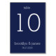 Cartões de mesa de casamento azuis marinho com texto personalizável