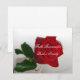 Lindos cartões de mesa para casamento com rosa, com uma única rosa vermelha em um fundo branco e texto branco sobre a rosa. Personalize o texto para atender às necessidades do seu casamento.