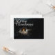 A carta mostra uma cena atmosférica, enrolada, com uma pequena cabana de madeira iluminada no meio de uma floresta coberta de neve. O dentro da fonte de luz quente cria um belo contraste ao meio escuro e pacífico. A elegante inscrição "Feliz Natal" em branco dá ao motivo um toque festivo. 🎄 ✨