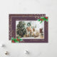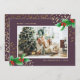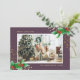 Cartões de Natal com uma cor de água púrpura elegante, com uma fotografia roxa, decorada com uma pintura de cor de água de Holly com bagas e um confete de folha de ouro falso. Personalize facilmente esses Cartões de foto de Natal de aquarela roxos com sua imagem e texto.