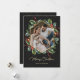 Cartões de Natal Elegantes, preto e dourado, com um quadro fotográfico geométrico cercado por uma faixa de aquarela sobre fundo preto. Personalize facilmente estes cartões de Natal com fotografia a aquarelas com a sua imagem, texto e um nome de família.