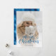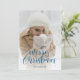 Cartões de Natal com fotos azuis personalizadas, com uma foto com uma camada de neve e uma letra manuscrita de script na frente e uma folha azul esfarrapada com neve na parte de trás. Personalize facilmente estes cartões azuis de Natal com a sua imagem e texto.