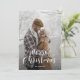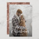 Cartões de Natal com rosa personalizados, dourados, com uma fotografia com uma camada de neve e um título com as mãos na frente e um brilho de ouro rosa com camada de neve na parte de trás. Personalize facilmente estes cartões de Natal com rosa dourado, com letra de mão, com a sua imagem e o seu nome familiar.