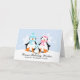 Os cartões de Natal customizáveis que caracterizam um par corujas empoleiraram-se em um ramo e em flocos de neve em um fundo azul.