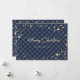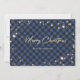 Cartões de Natal de xadrez azul personalizados com flocos de neve e estrelas brilhantes sobre fundo de xadrez de búfalo preto e azul. Personalize facilmente esses cartões mágicos de Natal com seu nome e texto da família.