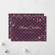 Cartões de Natal de xadrez roxa personalizados com flocos de neve e estrelas brilhantes sobre fundo de xadrez de búfalo roxo e preto. Personalize facilmente esses cartões mágicos de Natal com seu nome e texto da família.