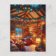 Desejando-lhe um Natal quente e aconchegante e antiquado e um Feliz ano novo. O verso do texto do cartão postal pode ser personalizado, para que você possa adicionar seu nome se quiser ou alterar a saudação. Cabana quente e acolchoada na véspera de Natal, cheio de decorações de férias, mortes de férias e luzes de Natal.