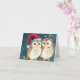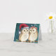 Um casal de corujas em um galho de árvore com um chapéu de Papai Noel. Cartão de Natal muito fofo que é perfeito para os amantes de corujas em sua vida.