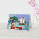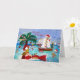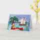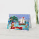 Cartões de Cartões de natal de desfile de baladas de Natal costeiro da minha arte. Sereia branca, pelicanos, veleiros e Papais noeis de palma decorados para o temático desfile de barcos.