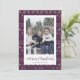 Cartões de Natal roxos nostálgicos, verdes e brancos e feios, com Papai Noel, renas, flocos de neve e árvores. Personalize facilmente estes cartões de Natal de suéter feio com a sua fotografia e o seu nome de família.