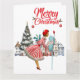 O Natal, como parecia na década de 1950, com esta trabalho de arte retrô de uma senhora toda vestida com um vestido de cheio esfolado aparado com Cartões de natal brancas de poste de pelo. Feliz Natal e dentro Feliz ano novo