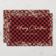 Cartões de Natal de xadrez vermelha e ouro personalizados, com faíscas em fundo de xadrez preto e vermelho. Personalize facilmente estes cartões de Natal brilhantes com o seu nome e texto da família.