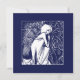 Um lindo cartão de felicitações de Natal em um formato quadrado incomum, apresentando uma reprodução de uma ilustração de um anjo ajoelhado, Art Nouveau, do famoso artista Aubrey Beardsley. No verso, um modelo "Bênçãos de Natal da família [seu nome]: Basta digitar ou limpar as caixas de texto onde diz "personalize". Muito espaço para a sua escrita também. Em azul e branco.