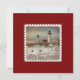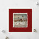 Charmante retro estilo cena de praia de inverno com cartão de Natal "Feliz Natal de Delaware" em fundo vermelho festivo.