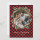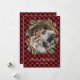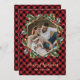 Cartões de natal de cor vermelha e dourada, elegantes e personalizados, com título de caligrafia e com fotograma geométrica, enfeitados com uma coroa botânica. Personalize facilmente estes cartões de Natal de xadrez de búfalos vermelhos com uma imagem e um nome de família.
