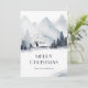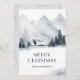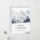Cartões de Natal personalizados de montanha, apresentando um cenário de inverno nevado com florestas e montanhas. Personalize facilmente estes bonitos cartões de Natal em aquarela com o seu nome e texto da família.