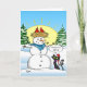 Procurando cartas de Natal engraçadas e ideias únicas e originais? Aqui estão cartões de natal engraçados de Raphaela Wilson que retratam um gato negro com um chapéu de Papai Noel, olhando para um par de cardeais vermelhos sobre a cabeça de Frosty, o boneco de neve... O sol está ascensão atrás das árvores e aquele felino faminto não pode esperar até que tudo derreta! A legenda do gato é: "Olá Primavera", mas sinta-se à vontade para transformá-lo em algo diferente, ou até mover a bolha de citação acima dos pássaros, se você quiser que eles digam algo cômico. Estes cartões de Natal personalizados e engraçados têm uma mensagem dentro que você também pode personalizar. Feliz Natal! E diverte-te a criar o teu cartão personalizado para enviares à família e aos amigos este ano... Categoria: ideia engraçada de cartões de Natal; família engraçada de cartões de Natal; e cartões de natal engraçados. Cores: azul, amarelo, branco, preto, vermelho e verde.