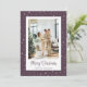 Cartões de natal de fotos roxas personalizadas com estrelas bonitinhas. Personalize facilmente estas fotos estreladas Cartões de Natal Feliz com a sua imagem e um nome de família.