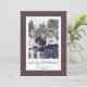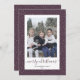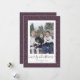 Cartões de natal com fotos roxas e douradas, com título de caligrafia e com um quadro de fotos roxas com neve. Personalize facilmente esses cartões de Natal com fotos de neve com sua imagem e seu nome familiar.