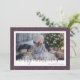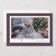 Foto personalizada púrpura e dourada Cartões de Natal Feliz com título de caligrafia e fotograma roxa. Personalize facilmente estes cartões fotográficos de Natal com a sua imagem, nome da família e texto.