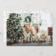 Foto personalizada da caligrafia Feliz Cartões de Natal com título manchado e botânicos com aquarela em cores marrom, roxo e cinza. Personalize facilmente estes cartões fotográficos de Natal com a sua imagem, nome da família e texto.