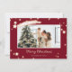 Cartões de Natal personalizados, com fotos vermelhas, com um roteiro manuscrito e estrelas em fundo vermelho. Personalize facilmente estes cartões vermelhos estrelados de Natal com a sua imagem favorita, um nome de família e texto.
