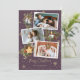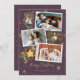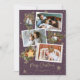 Lindo foto roxa e dourada com aquarelas Cartões de Natal alegres com sinos de Natal, cones de pínus, galhos, flocos de neve e neve caindo. Personalize facilmente este cartão de Natal com aquarelas com as suas próprias imagens e um nome de família.