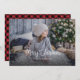 Cartões de Natal personalizados de xadrez de búfalos vermelhos com neve excessiva e um título de fonte de script sobre uma foto. Personalize facilmente estes cartões de Natal com fotos vermelhas da neve com sua imagem e seu nome familiar.