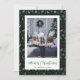 Cartões de Natal, preto nostálgico, verde e branco, de suéter feio, com Papai Noel, renas, flocos de neve, árvores e bolhas. Personalize facilmente estes cartões de Natal de suéter feio com a sua fotografia e o seu nome de família.