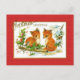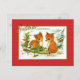 Cartaz de natais vintages com pintura de duas raposas sentadas na queda de neve, visitando um passarinho e desejando Cartões de natal para todos.