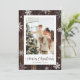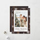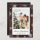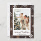 Cartões de natal com fotos rústicas e personalizadas, com flocos de neve em um fundo de madeira rústica com neve. Personalize facilmente estes cartões de Natal com flocos de neve com sua foto e seu nome de família.