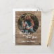 Cartão único, clássico, de moda, rústico e decorativo de Férias, com citação de texto de Ano Novo Feliz de Feriados, e espaço para personalizar ou personalizar com uma foto e nomes (ou nome de família) de sua escolha em um padrão de textura de madeira de celeiro de fazendas casadas com estilo rústico. E um poema de saudação de estação personalizável na parte de trás do cartão.