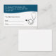 Modelo de cartão de negócios de consultas médicas, incluindo a imagem de um estetoscópio em segundo plano e o simples layout de compromisso para lembrar seus pacientes da próxima visita. Concebido para uma clínica médica, consultório médico ou clínica médica para um médico.