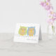 Um adorável par de corujas do estilo kawaii, uma em tons de azul e marrom e a outra em tons de menta verde e marrom. Abaixo delas estão as palavras "Pássaros do Amor". O texto do fronte Lovebird e a saudação interna podem ser personalizados com sua própria mensagem.
