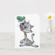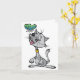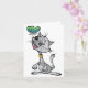 Uma design linda de um gato sentado olhando para cima de uma borboleta que está voando bem acima do nariz. O gato é cinza e tem a língua rosa para fora e parece muito feliz com o mundo. A borboleta é adorável e voa logo acima do gato. Este gato e uma design de borboleta parecem excelentes nessas cartas